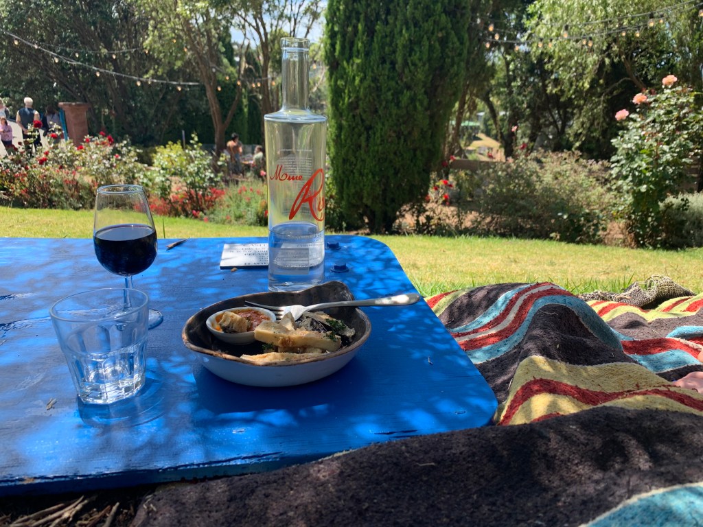 Since it was early afternoon and I was hungry, I walked up the street to Casita Miro, a tapas restaurant and wine bar that absolutely made my life. It’s named after the wonderful Spanish painter Joan Miro, and you can tell the decor’s inspired by his work. I ordered a class of their Aphrodisiac wine (a refreshing red with some sweetness — I don’t know how to judge wine so I’m just spitballing here) and some fried eggplant with honey and harissa sauce. I grabbed a blanket and sat on the hill overlooking their vineyards, lying back and taking a nap after applying some sunscreen, because the UV levels in NZ do not mess around.