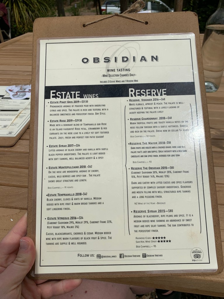 Obsidian, one of about 40 vineyards on Waiheke, offers wine tastings at their cellar door until 5pm. For $15 NZ, you can taste 4 different wines — three estate wines and one reserve. The Montepulciano was the clear winner of my heart, but I also ended up trying 5 wines (the sommelier brought me a fourth estate wine by accident). Their Obsidian Reserve is also literally the winner for best New Zealand wine. As a person who doesn’t know anything about wine, I still say you should go here if you’re in the area.