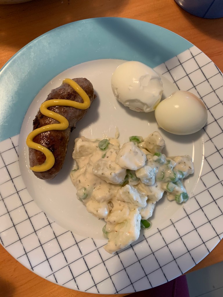I enjoyed the afternoon views from the porch, watched cartoons with Gloria, and ate a wonderful dinner of beef sausage (!), boiled eggs (!!) and potato salad (!!!), followed up with a few pieces of chocolate slice homemade by Karee (!!!!). This place will actually kill me.