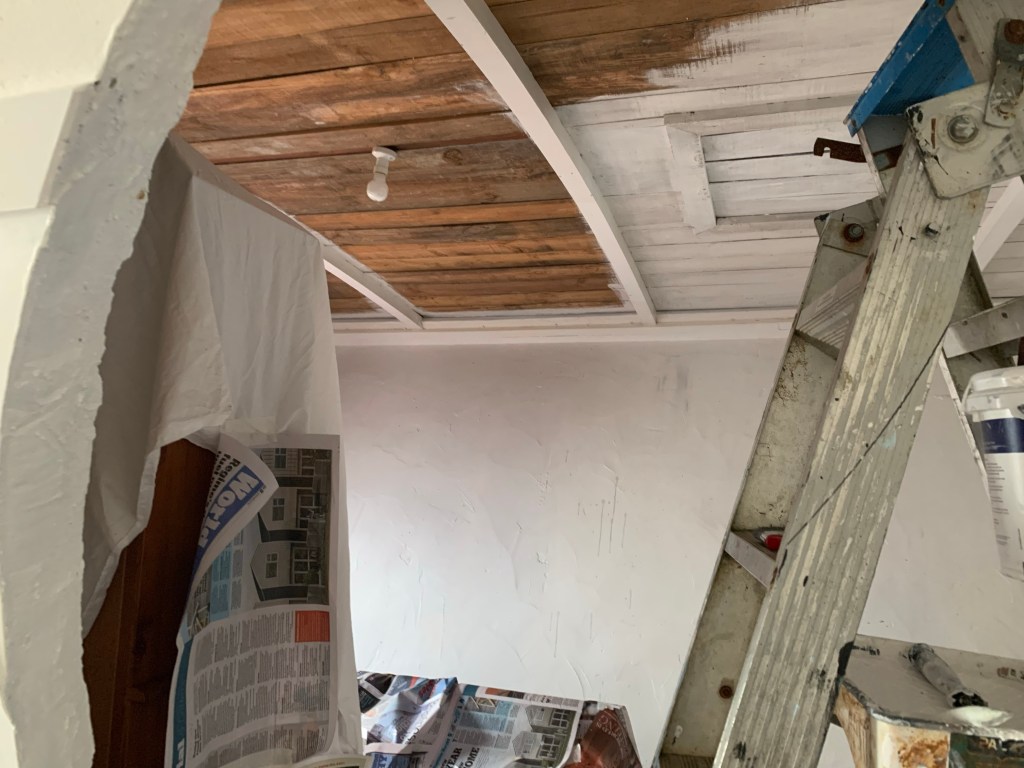 Back in Rawene, it was time to finish painting the ceiling. With the second coat done in the morning, I helped wash the windows while Luca and Karee painted the back of the house.