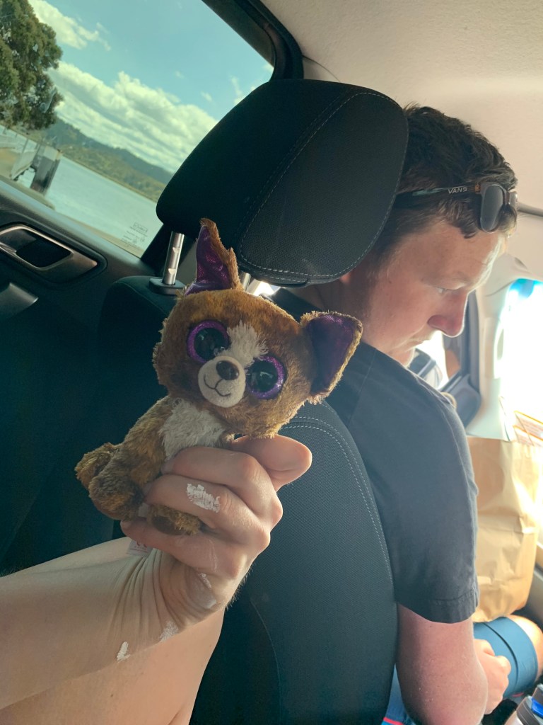 On the way home, we stopped to get Pineapple Lumps (a classic — basically chocolate-covered sugar pieces) and a Red Bull pick-me-up. We also said hi to Gloria, Jazzy and Krysta at the farm once again before blessedly driving back to Rawene.