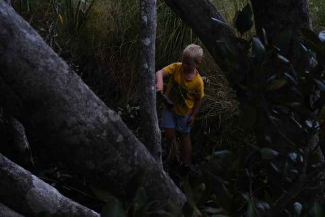 After dinner, we all walked down to the mangrove wharf at the bottom of the hill (or as Gloria calls it, the mango wharf). Sabrina and I did lots of swinging with Gloria, while Luca and Jesse James climbed (and broke) some trees.