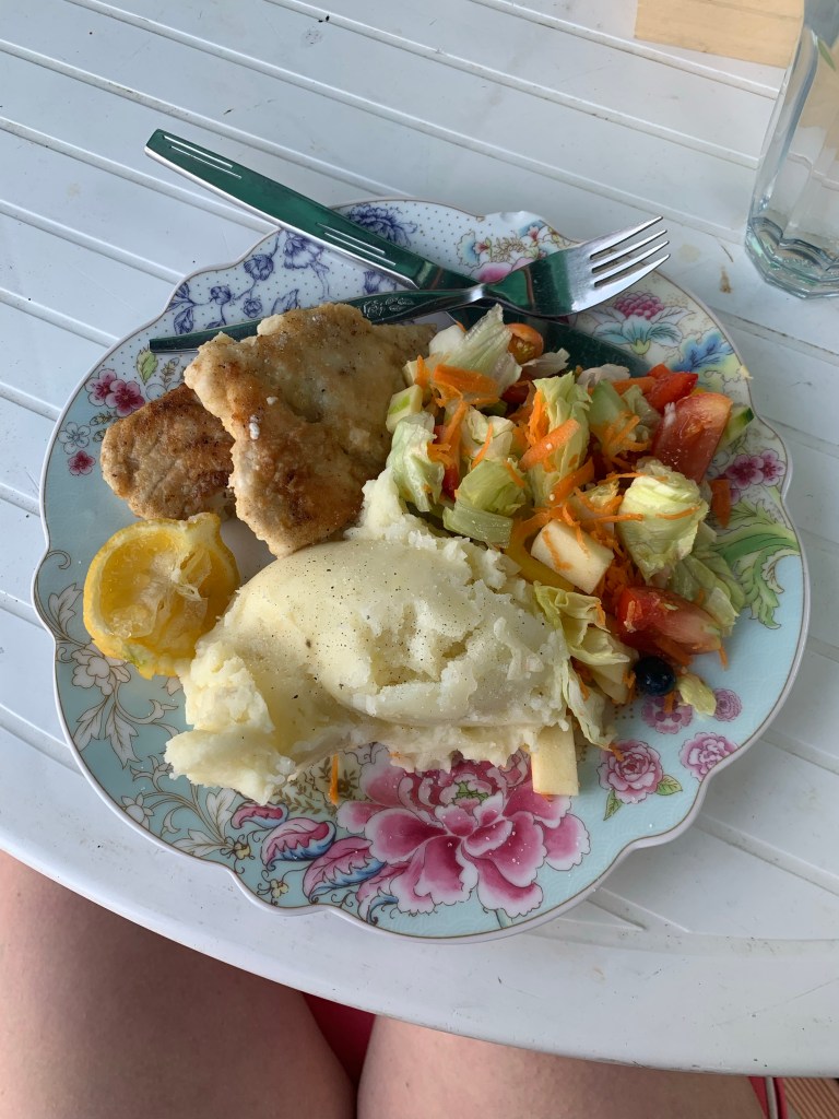 Then I met Sabrina, my fellow Workawayer. She’s also 19, from Lake of Constance in Germany, and is traveling around NZ for a few months. We all had a (very welcome) dinner of fried snapper, potatoes and salad with veggies from the garden, followed up with a slice of pie and whipped cream. What a dream.