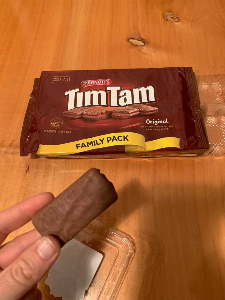 Back in Rawene, Luca introduced me to the Tim Tam slam. If you don’t yet know, a Tim Tam is a delicious chocolate wafer (Australian, sold in the US but I’d never had them before). For the slam, you bite off the chocolatey corners and try to suck a hot liquid like coffee or tea through the wafer before it inevitably melts into the hot liquid. I don’t understand the physics of it, but Luca was the reigning champ.