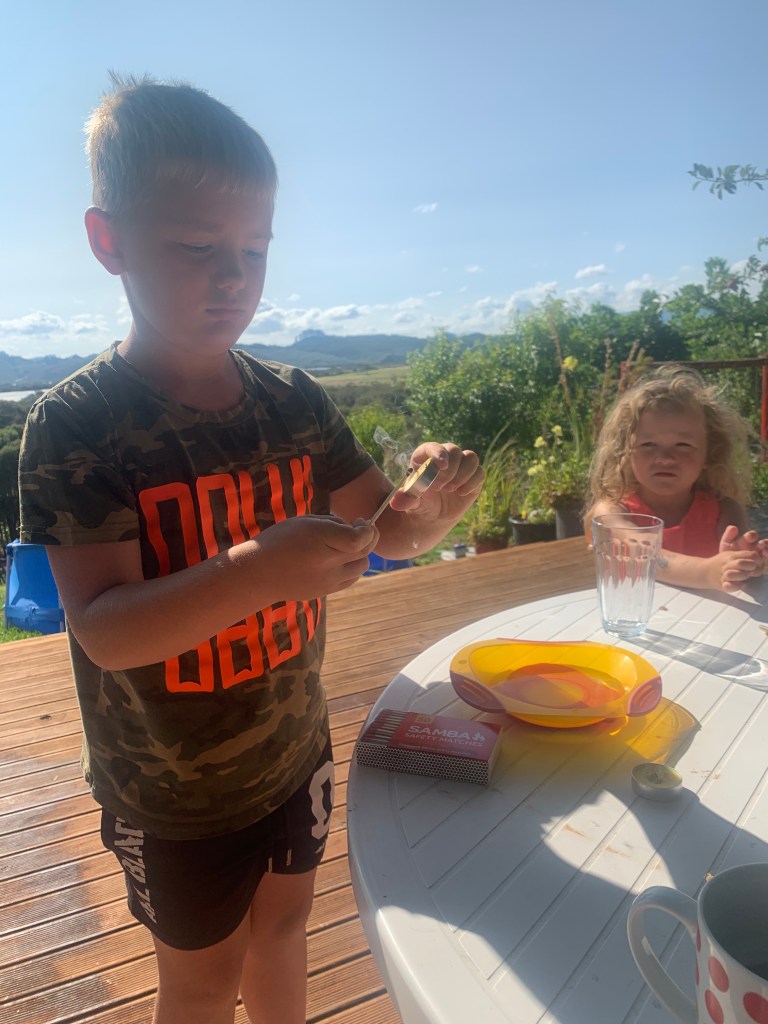 Tired out, we drove back to Rawene. That night, Karee’s old friend Connie, her husband Rico and their daughter Matilda (7) stopped by the house to say hello. Connie and Rico are German but live in Alberta, Canada. Almost ten years ago, Connie worked on Karee’s mom’s farm outside of Paihia, and their family was taking a trip around NZ and Australia for a month or so. There was also an Aussie couple staying at Karee’s Airbnb sleepout, so we had quite the crew at hobbit house.