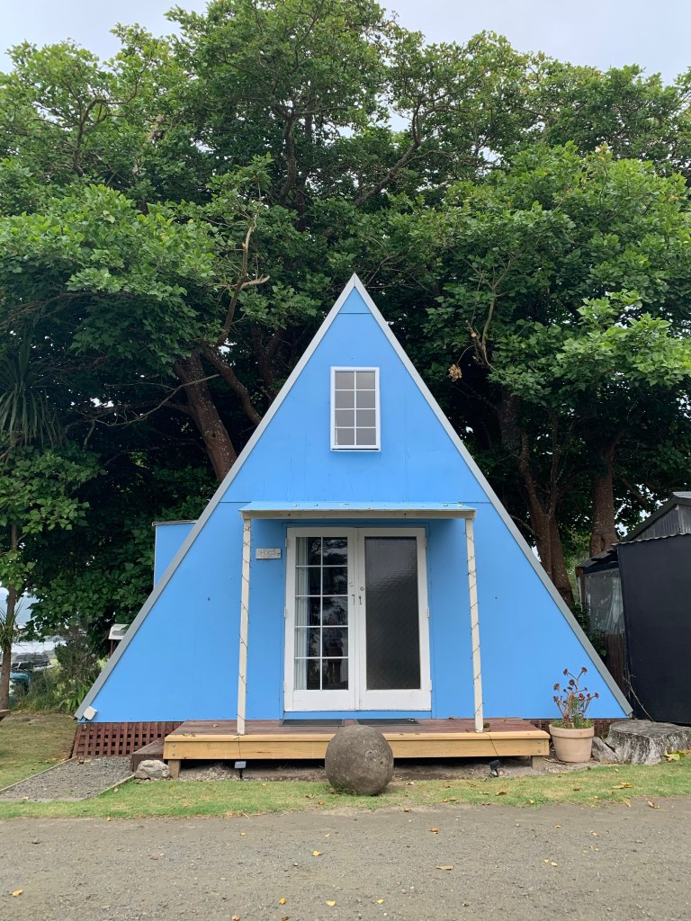 After eating, Sabrina and I went for a walk around Rawene. We ran into the Rawene Holiday Park, where we met the owners and their gorgeous dog. Also, we spotted a house straight out of Midsommar.